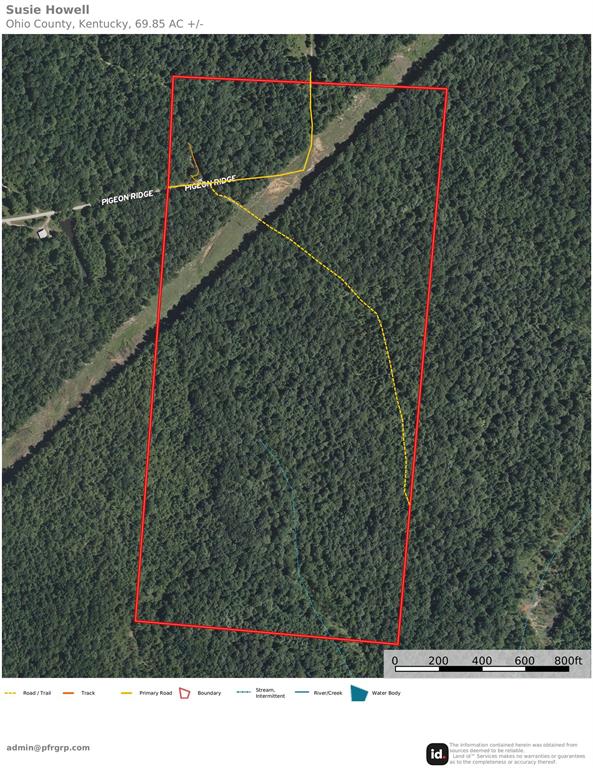 Tucked away on quiet Pigeon Ridge Lane in Beaver Dam, Kentucky, this 72± acre wooded tract offers an excellent blend of privacy, recreation, and long-term land value. The property is entirely timbered and was last selectively cut in 1995, allowing nearly three decades of regrowth that has created a healthy, mature stand and outstanding wildlife habitat. A natural stream feeds into the back side of the property, providing a consistent water source that is a major draw for wildlife. This feature creates natural travel corridors and bedding areas, making the property well-suited for strategic stand placement and year-round recreational use. Water and electric are available along the road, adding convenience for a future cabin, campsite, or recreational improvements. The area is known for strong populations of whitetail deer and wild turkey, and this tract checks all the boxes hunters look forâthick cover, natural browse, and reliable waterâoffering excellent deer and turkey hunting opportunities throughout the season. Adding to the character of the location, Bill Monroeâs legendary home placeâthe birthplace of bluegrass musicâis located just up the road, giving this property a unique sense of local history and Kentucky heritage. Whether youâre searching for a dedicated hunting tract, a private recreational getaway, or a long-term investment in timber and land, this 72± acre property delivers seclusion, natural beauty, and classic Kentucky outdoor appeal in a desirable Ohio County location just minutes from Beaver Dam.