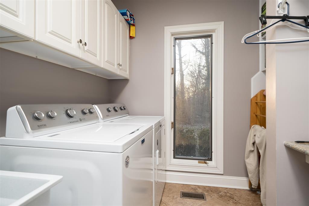 Set on a private 1.3 acre lot on a dead end street, this expansive home offers over 6,500 finished square feet designed for both everyday living and entertaining. Crown moulding, vaulted ceilings, skylights, and an abundance of natural light create a bright, open feel throughout the main living areas. The main level primary suite is a true retreat featuring a fireplace, sitting area or office, and a spacious en suite bath. Walk in closets are found throughout the home, offering exceptional storage. Multiple living spaces on the main level allow flexibility for formal and casual use, along with an additional large office positioned at the front of the home. The finished walk out basement adds another living area complete with a kitchenette, making it ideal for guests, multi generational living, or entertaining. A secondary washer and dryer hookup is located in the basement, in addition to the main level laundry. Outdoor living is just as impressive with a tri level deck overlooking open fields, a fire pit area just off the deck, attached outdoor storage, and a peaceful, wooded setting. Additional features include multiple fireplaces, granite surfaces, skylights throughout, and a triple attached garage. This property offers privacy, space, and versatility while remaining close to Owensboro conveniences.