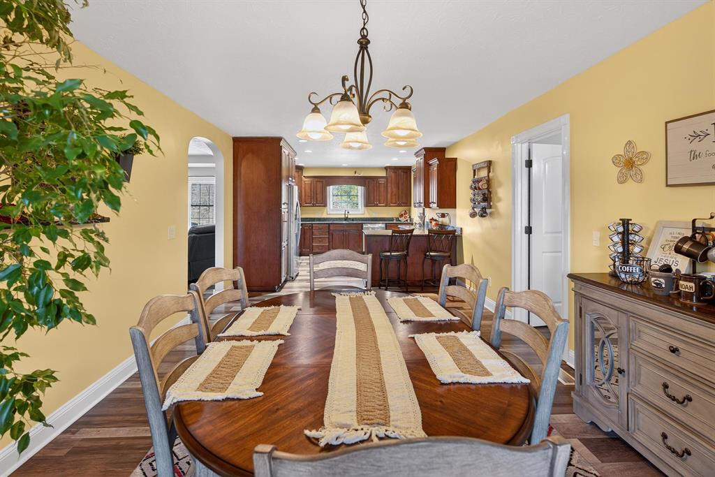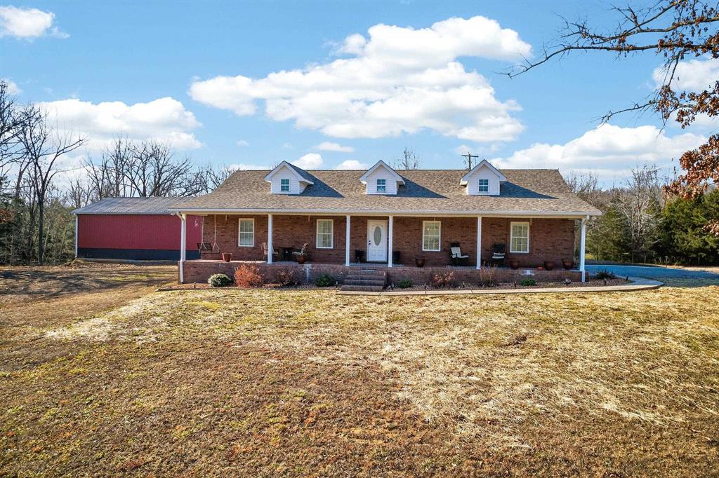 Charming brick home situated in a great neighborhood on 19+ acres! This spacious property offers a comfortable layout featuring a living room, kitchen/dining area, laundry room, 3 bedrooms, and 2 full bathrooms. A dedicated office with a custom built-in desk provides the perfect work-from-home space and could easily serve as a 4th bedroom. Outside, you'll find a massive 2,278 sq ft detached garage, ideal for vehicles, a workshop, storage, or hobbies. Enjoy the privacy and room to roam that this beautiful acreage provides while still having a convenient, functional home setup. A rare find with space, versatility, and land!