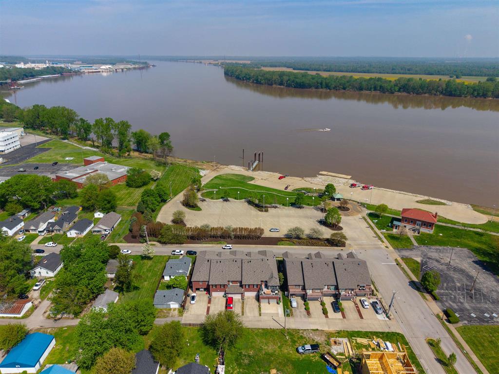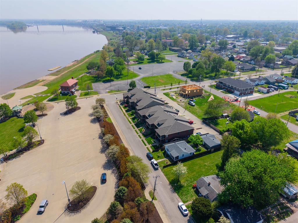 Stunning lakefront home at English Park & the Ohio Riverfront boasts 3- bedrooms, 2.5 baths. Pristine condition throughout. Inside features a spacious open concept: Gorgeous porcelain tile floors flow from Great Room into Kitchen. Notice the architectural details, the wood trim, and the fireplace. Three bedrooms, 2 full baths, including the owner's suite, are located upstairs. The owners suite is best described as pampering: With his and her closets, dual sinks, a soaker bathtub and a walk-in shower, you'll enjoy this restful retreat, with its own balcony overlooking the park and water to the North. Downstairs, The kitchen flows nicely between the dining and living rooms and offers granite countertops along with an oversized island. Storage is a breeze with a walk-in pantry. Spacious Half bath. A two-car attached garage with solid wood custom cabinetry provides plenty of room for all the toys and a vast array of storage options. This brick two story has a zero-lot line, benefits from no HOA hassles, and a new roof. The lucky new owners will wake up each morning, watching the sun rise over the water. This home will not disappoint... Call to schedule your showing soon.