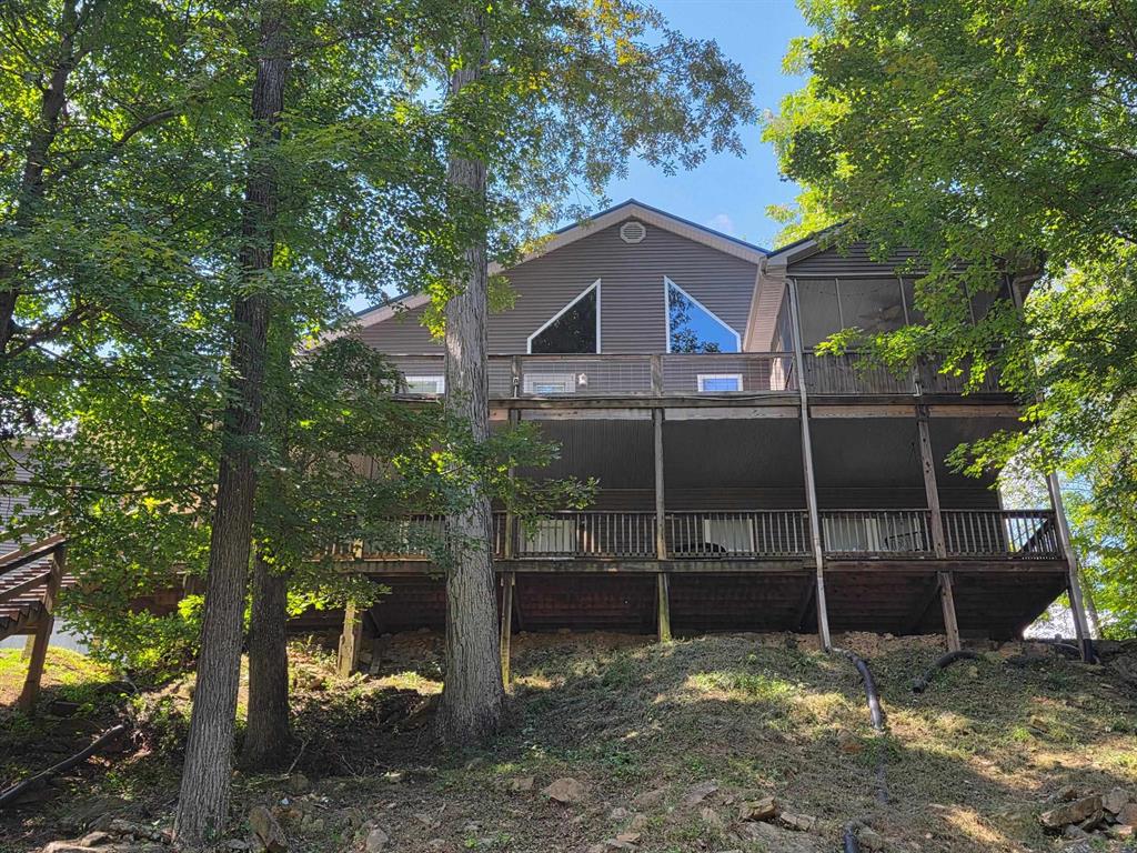 OPEN SUNDAY 11/23 from 1 to 3pm CT! Discover the charm of this stunning waterfront home, perfectly situated on two lots with two docks at the bottom of the property. This residence offers a blend of modern amenities and cozy living spaces, making it an ideal retreat for families and friends. 4 bedrooms and a 5th sleeping area or multi-purpose room - and TONS of parking, you can bring your family and friends and still have some privacy! Multiple decks let you spread out there too! TWO waterfront lots, TWO docks (one with 2 jet ski ports that stay!) Furniture is available too! Located in a beautiful neighborhood near two ramps, this home is in the middle of everything by land and by water. The super chill location on a cove off Long Lick Creek is perfect for kayaking, floating, or sunbathing on the docks. Step inside and be instantly greeted by cozy, warm colors that blend perfectly with the natural setting of this lake home. Just off the large foyer is a guest bedroom, full bath, stairs to the loft sleeping area AND catch your first glimpse of that beautiful great room! This open-concept living area is where you'll find that BIG, stone fireplace as the centerpiece of the lake-side wall. Beautiful stone floors help to set the mood for living at the lake! The great room opens up to the main living areas, providing a spacious and inviting atmosphere. With lots of sleeping areas and tons of parking options, there's plenty of room for everyone! There's even room for a large camper or RV in the detached, multipurpose shed! Adjacent to the fireplace is a crowd-sized dining area with a window wall and adjoining kitchen. The custom kitchen comes with tons of cabinets and upgrades, making it a chef's dream! The main level laundry is conveniently located near the outdoors, adding to the home's practicality. The primary bedroom suite on the main level includes a bath with heated floors, a tile shower, and a vintage-style tub. There's also a screen porch off the primary bedroom for morning coffee or afternoon naps. The lower level features a family area with an electric fireplace that changes colors, a dining or card table, and another lounging area to relax. The bunk room on this level comfortably sleeps eight, and there's another sleeping area or multi-purpose room that's plumbed for a future bar. Storage is abundant both inside and outside the home, including a huge RV-sized shed with tall overhead doors that let you drive THROUGH the building! The property boasts a big open deck and a large, covered deck on the lower level. Located in a beautiful neighborhood near two ramps, this home is in the middle of everything by land and by water. The super chill location on a cove off Long Lick Creek is perfect for kayaking, floating, or sunbathing on the docks.