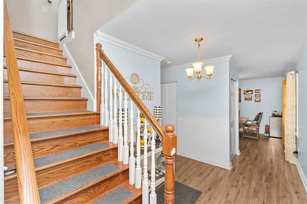 This magnificent two-story home showcases over 2200 square feet of finished living space. Situated on spacious corner lot in a sought-after neighborhood. The property features four bedrooms, 2.5 bathrooms, a formal dining area, two living spaces, crown molding throughout, a solid oak staircase, and a 2.5-car attached garage. Recent updates include the installation of a new roof, siding, and gutters in 2025, as well as the addition of a new hot water heater and kitchen appliances in 2023. The expansive backyard features a newly installed privacy fence, making this property a must-see.