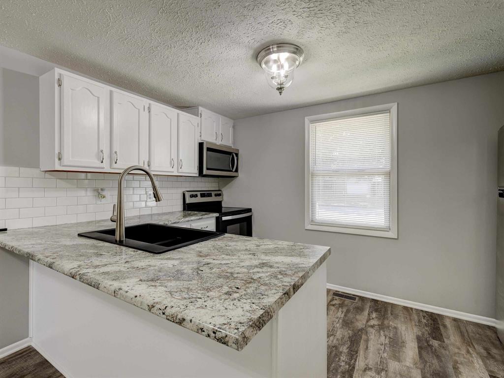 Brick home in Tamarack Park with 2 bedrooms and 1 full bathroom. Kitchen updates include new stainless appliances, countertops, sink, tiled backsplash and bar with seating. New vanity in bathroom. Main bedroom offers walk-in closet. New paint and flooring throughout. New light fixtures. Backyard with storage building. New HVAC in 2018. Newer dimensional shingles. Immediate possession. $159,900.