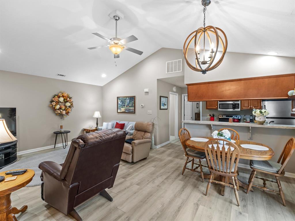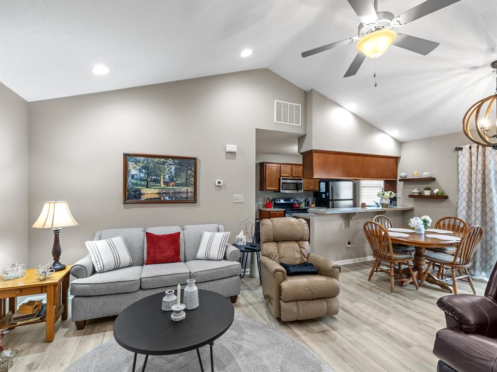 NEW PRICE on 11-12-25 of $229,900. IMMEDIATE POSSESSION! This charming 3-bedroom, 2-bathroom home is located in Thoroughbred Crossing and offers low-maintenance living. Spacious living room boasts vaulted ceilings and the adjoining dining area features a sliding patio door, bringing in natural light and offering easy access to the patio. The kitchen is equipped with stainless steel appliances and a bar. The ownerâs suite is located on the main level and includes a private en-suite bath. The main level also features a second bedroom with attached bath, and laundry room. Upstairs, you'll find a third bedroom/bonus room. A 2-car attached rear-load garage and new roof. Trade plan offered if you need to sell your home first.