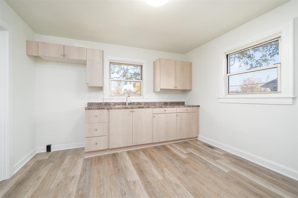 Step into modern comfort and mid-century quality construction in this spacious home! 3 bedrooms. 2 full baths with new vanity, new commodes, new tub & shower surround in the west bathroom, new walk-in shower in the west bathroom. You'll love the flexibility of the Formal Liv Rm and the rear Family Room, but you'll be Amazed at the quality of the renovations: Generous eat-in kitchen features new cabinets, new countertops, new lighting. New quality LVP flooring flows from throughout the main level. Freshly painted with Benjamin Moore Paints. Replacement windows. New dimensional shingle roof. New siding on west & south sides of home & garage. Heat & Air 2014. Hot water heater 2017. This is an ideal location within close proximity to restaurants, shopping, grocery stores, gas, church, schools. Detached oversized garage has electrical & room for a workbench. The rear yard goes all the way to the alley, and would be easy to fully enclose in the future. Value priced at $189,900. Do not delay, this is a timely value ready for you!