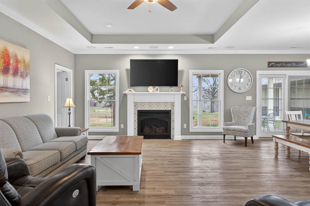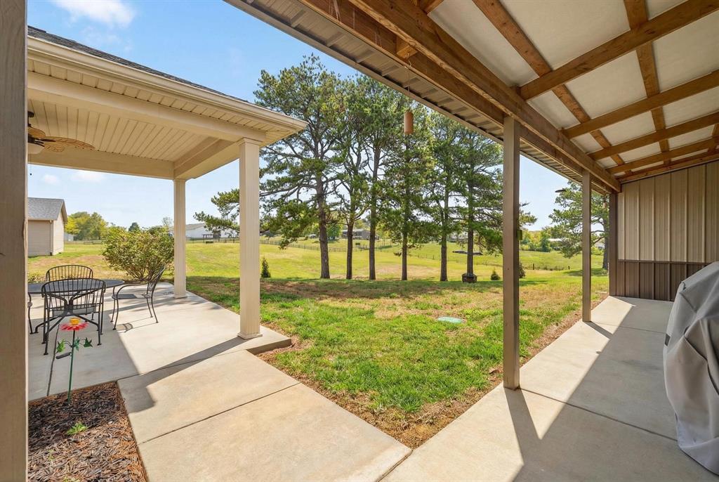 Custom Paul Martin brick ranch situated on 1.6+ acres in the peaceful countryside of Philpot. This beautifully designed 3 bedroom, 2 bath home offers an open-concept layout with 9â ceilings, tray ceilings in the living room and primary suite, surround sound, and a gas log fireplace creating a warm and inviting gathering space. The spacious kitchen features a large island and pantry, gas or electric option for range, soft-close base cabinetry, and generous prep space, perfect for everyday living and entertaining. The primary suite offers a walk-in tile shower and walk-in closet, creating a comfortable private retreat. Additional upgrades include a tankless gas water heater, security system and generator-ready electrical panel for plug-in backup power. The 2+ car attached garage includes a utility sink, built-in shelving, and pull-down stairs leading to a floored attic storage area. A standout feature of the property is the impressive 28' x 36' climate-controlled shop, finished with drywall and equipped with a small kitchenette, half bath, tankless water heater, floored attic and overhead garage doors on both ends, offering incredible flexibility for hobbies, workspace, or storage. Enjoy the space, privacy, and comfort of country living while remaining conveniently located to nearby amenities.