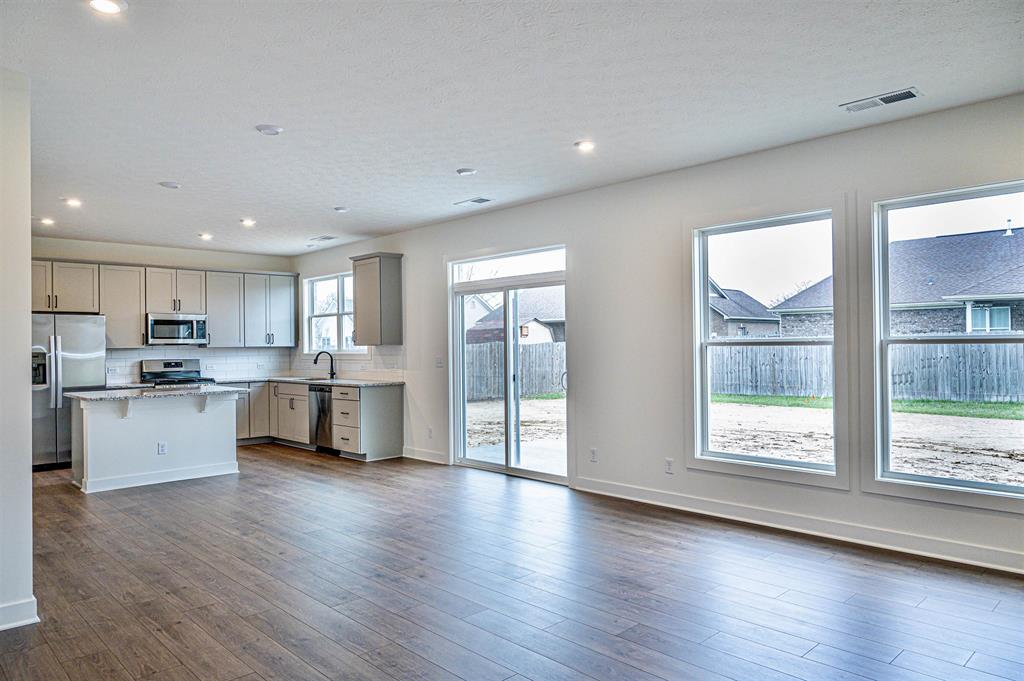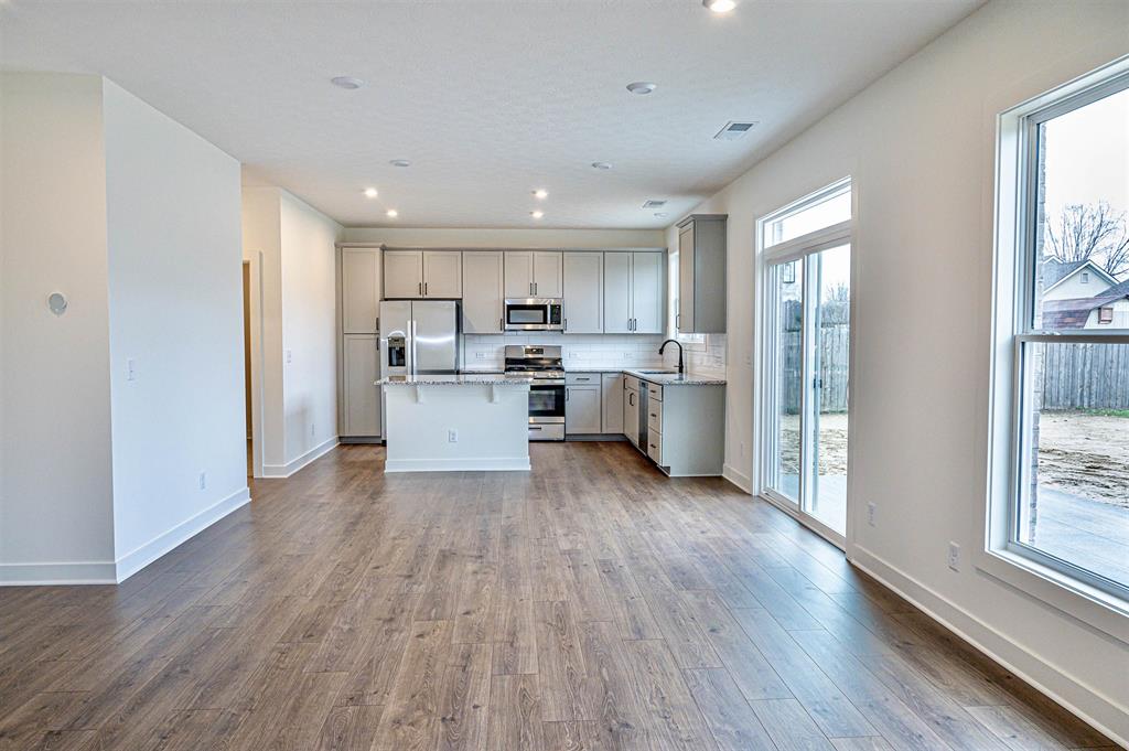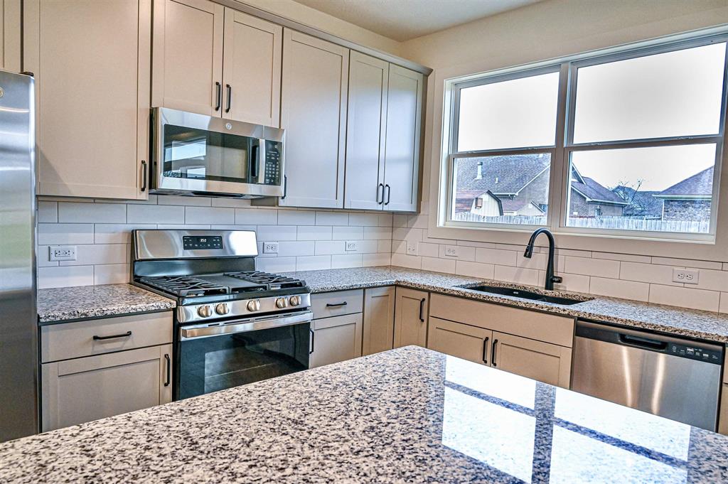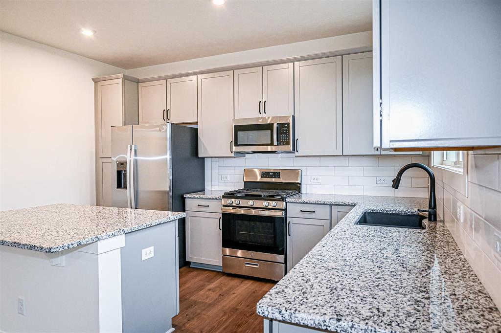 This Freedom Series floor plan with a full brick exterior allows room to grow. Storage is maximum in the foyer, with two large closets for coats or seasonal storage. Enjoy the large family room, dining area, and kitchen with ample natural lighting and panoramic views of your backyard. the upgraded kitchen layout includes granite countertops, a tile backsplash, and a stainless steel appliance package with a gas range. The powder bath and laundry with included pantry shelving are conveniently located off the kitchen. Upstairs establishes your private family retreat, with an ownerâs suite and an ensuite bath, including a double bowl vanity, a ceramic shower, and a large walk-in closet. Three sizeable bedrooms, a second full bath, and a loft complete the second story. RevWood Select Granbury oak flooring is throughout the main living areas and ceramic tile is installed in the wet areas. Youâll love this EnergySmart home!