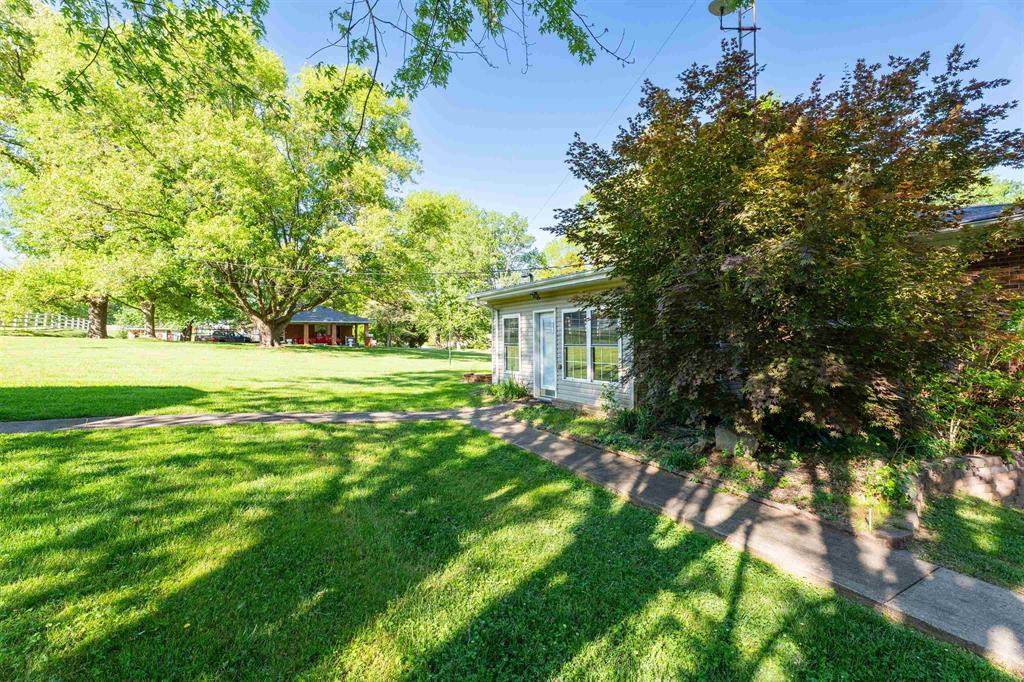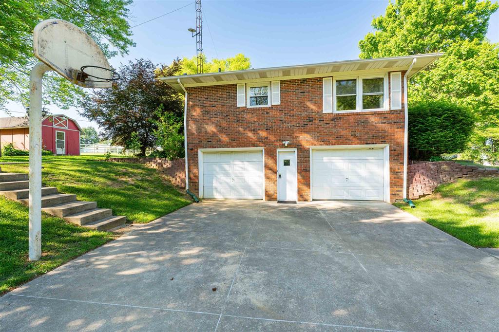 East side 3-bedroom, 2-bath brick home on a 1.38-acre corner lot just outside of town. Convenient location off Hwy 54, shopping, dining, and great schools. Full unfinished basement with great potential to increase square footage. A 2-car attached garage and a shed provide lots of storage space. Large sunroom for enjoying scenic views. With a few minor cosmetic updates, this home is a great opportunity to build equity. Vacant and easy to show.