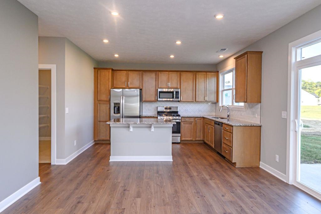 This flexible floor plan offers room to grow and adapt to your lifestyle. The two-story foyer includes two large closets for coats and seasonal storage. The main level features a spacious family room, dining area, and kitchen, all bathed in natural light with panoramic backyard views. The upgraded kitchen layout includes granite countertops, a tile backsplash, and a stainless steel appliance package with a gas range. For your enjoyment, an expanded patio is located off the dining area. A powder bath and laundry room with pantry shelving are conveniently located off the kitchen. Upstairs provides a private family retreat with a generously sized ownerâs suite, including an ensuite bath with a double bowl vanity and a walk-in closet. Three additional bedrooms, a second full bath, and a loft complete this home. RevWood Select Granbury Oak flooring is throughout the main living areas and ceramic tile is installed in the wet areas. Jagoe TechSmart components are included. Youâll love this EnergySmart home! For a limited time, we will be offering a 4.75% rate incentive with FBC Mortgage (for FHA, VA, and USDA loans only) with a 1-0 Temporary buydown during the first year of the loan. Making the rate 3.75% for the first year. In addition to the rate, we are offering up to $2,500 in closing costs. Other restrictions apply. See the website for more details.