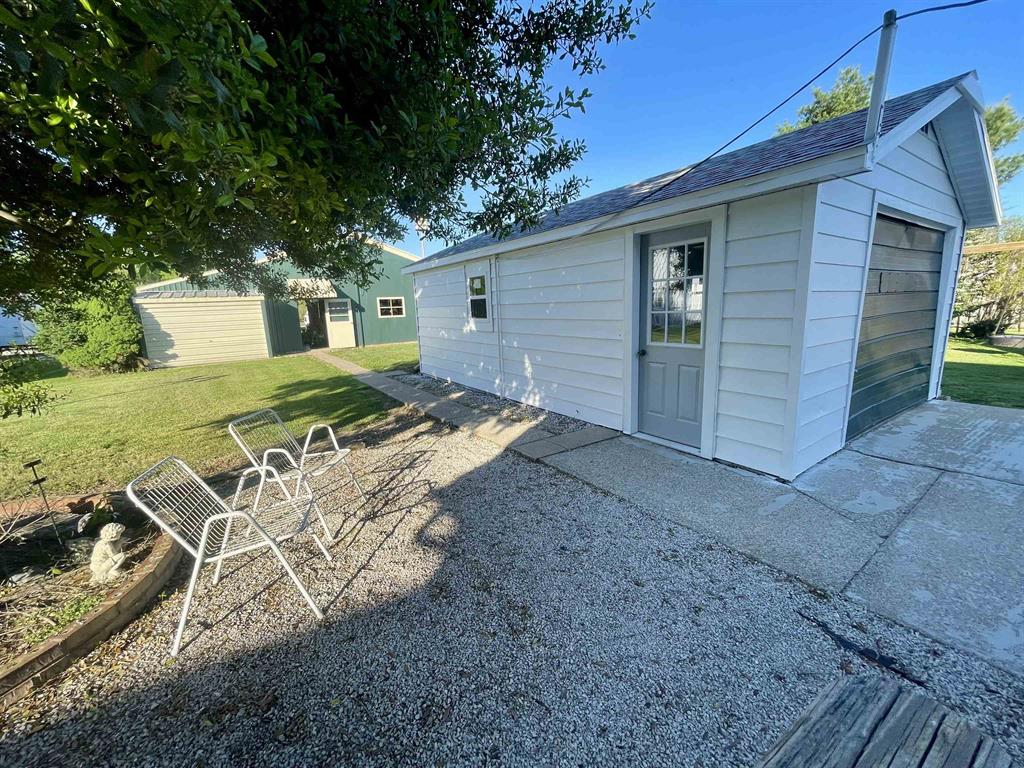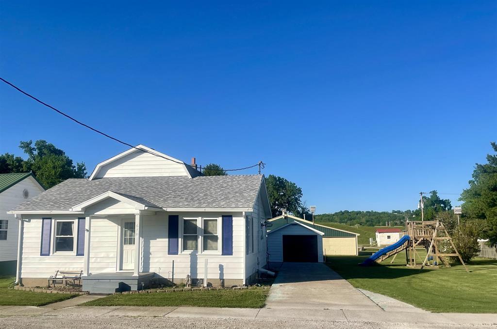 This charming 4-bedroom, 1-bath home is bigger than it appears and packed with value! Featuring fresh paint on durable aluminum siding and a newer roof, this property sits on two spacious lots offering plenty of room to spread out. Enjoy outdoor living with a patio and swing set, perfect for relaxing or entertaining. Inside, you'll find solid oak cabinets and a functional layout with room for the whole family. The home also includes a wheelchair-accessible ramp for added convenience. Need space for projects or storage? You will love the 1-car detached garage plus an 3-bay workshop complete with a half bath and manual chain hoist-ideal for hobbyists, mechanics, or small business use. With its huge yard and versatile features, this property offers more than meets the eye!