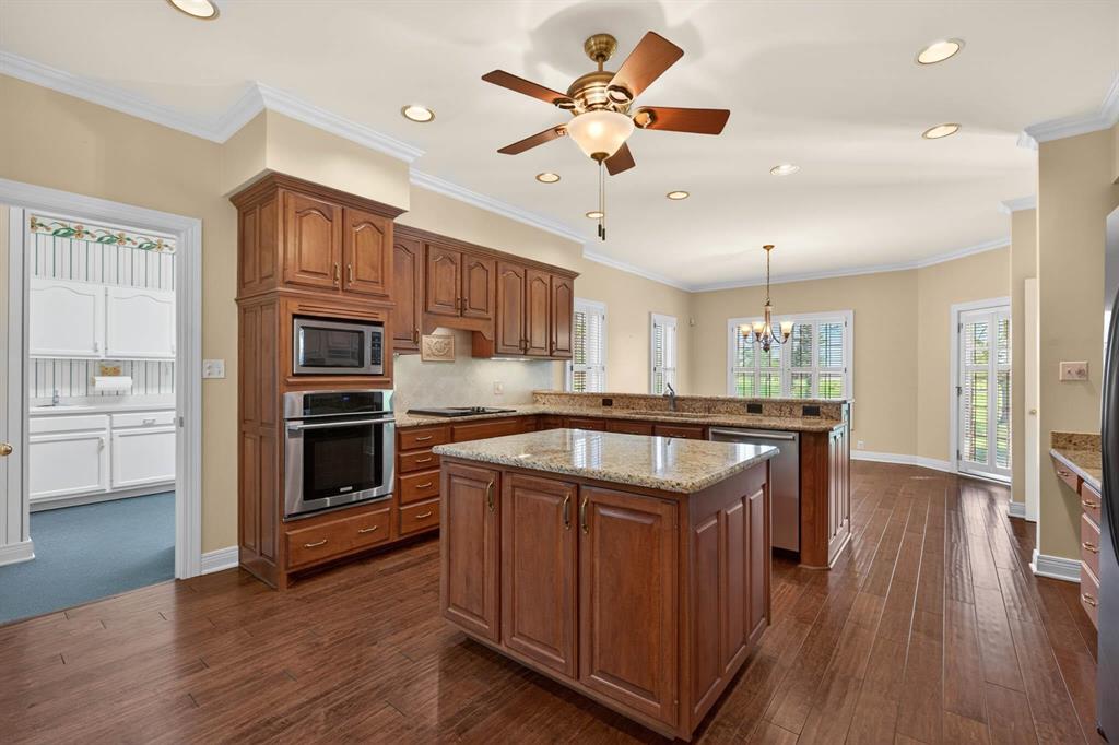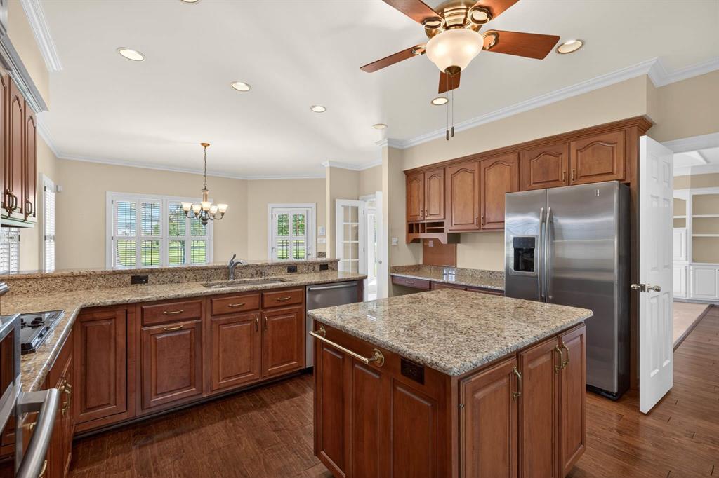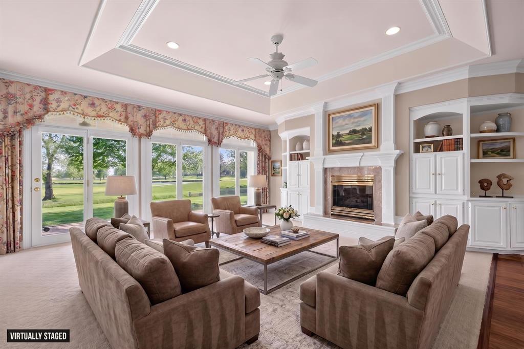 **Open House Saturday, April 25, 10 a.m. to Noon** Located in one of the areaâs most sought-after country club golf course communities, this custom-built home offers over 3,700 square feet, 3 bedrooms (potential for 4th), and 2.5 bathrooms with beautiful views of the course. The curb appeal sets the tone with classic brick construction, manicured landscaping, and a stately presence. Inside, youâll find a spacious layout featuring detailed millwork, tray ceilings, built-in cabinetry, and multiple living areas designed for both everyday living and entertaining. The main living room is filled with natural light and centered around a fireplace with custom built-ins, while large rear windows capture scenic golf course views. The kitchen offers abundant cabinetry, granite countertops, a center island, and a functional layout that opens to the main living spaces. A standout feature of the home is the executive-style den with its own fireplaceâideal for a home office, library, or quiet retreat. An additional bonus space offers flexibility to serve multiple purposes, whether as a media room, playroom, or guest area. The primary suite provides a private retreat with generous space and views of the backyard and course. Additional bedrooms are well-sized and thoughtfully positioned. Enjoy the outdoors year-round from the covered patio overlooking the backyard and open fairwaysâan ideal setting that is both peaceful and hard to find. Offered at $699,900, this is a rare opportunity to own a custom home in a premier golf course location.
