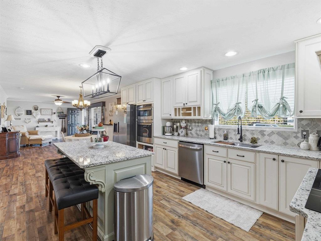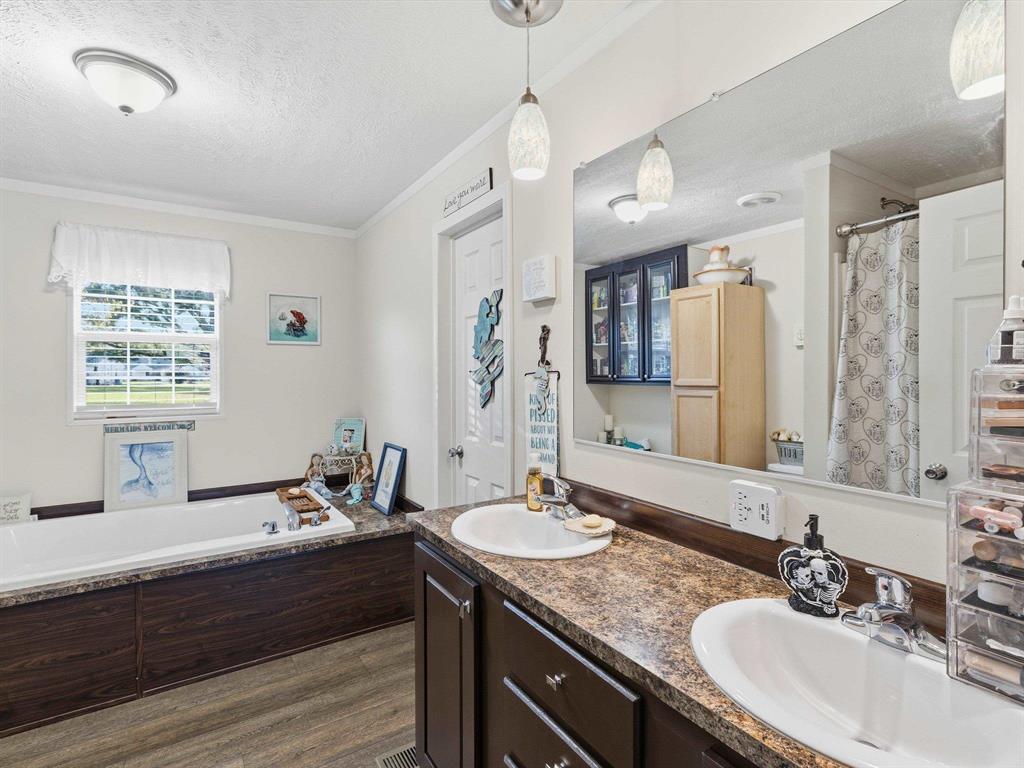 Spacious 4-bedroom, 2-bath manufactured home on just under an acre! This home offers a split-bedroom layout and an open floor plan thatâs perfect for everyday living. The updated kitchen features granite countertops, refinished cabinets, an island, and modern appliances. The primary suite includes a large bedroom with walk-in shower, garden tub, double vanity, and a generous walk-in closet. The hall bath also offers dual sinks, making mornings easy for everyone. Outside, enjoy a level lot on a quiet dead-end street with no flood insurance required (LOMA and Plat "Tract 4 "on file). The property also includes a 30x40 detached 2-car shop with concrete floors and electric â plus a separate heated and cooled man cave with bar, great for entertaining or relaxing. Property also includes a fence, covered deck out back, 21 ft concrete circular pad, and 2 vehicle carport. Move-in ready and loaded with features â schedule your showing today!