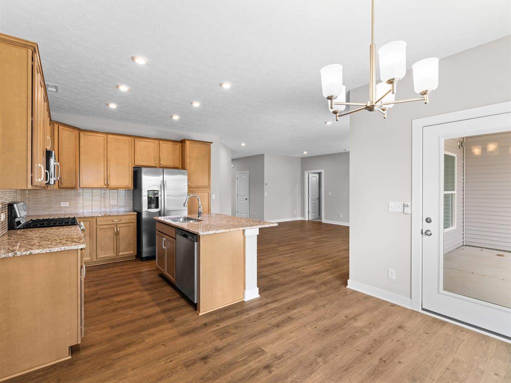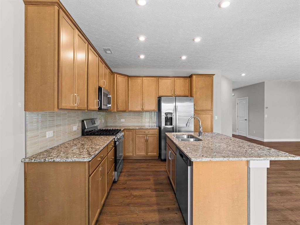 SPECIAL RATE INCENTIVE! This Highland Series home has a ranch-style design and a split-bedroom layout. Youâll find the secondary bedrooms and a full bathroom as you enter the foyer. Moving forward, youâll discover a roomy family area, a kitchen with an upgraded layout and island, and ample dining space. The kitchen includes granite countertops, a tile backsplash, and a stainless steel appliance package with a gas range. Attic storage is accessible in the garage. The ownerâs suite is adjacent to the family room and comes with an ensuite bathroom, including a double bowl vanity, a walk-in shower, and a generously sized walk-in closet. The home also boasts a spacious laundry room and a private, covered patio. RevWood Select Granbury Oak flooring is throughout the main living areas and ceramic tile is installed in the wet areas. Jagoe TechSmart components are included. Youâll love this Energy Smart home!